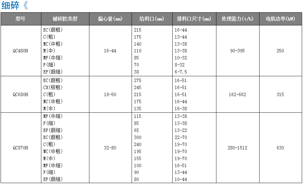 QC系列單缸圓錐破碎機具有高破碎率、高產(chǎn) 品質(zhì)量和低生產(chǎn)成本特性,能夠適用各種工況及破 碎物料,可滿足中碎、細(xì)碎及超細(xì)碎的破碎要求